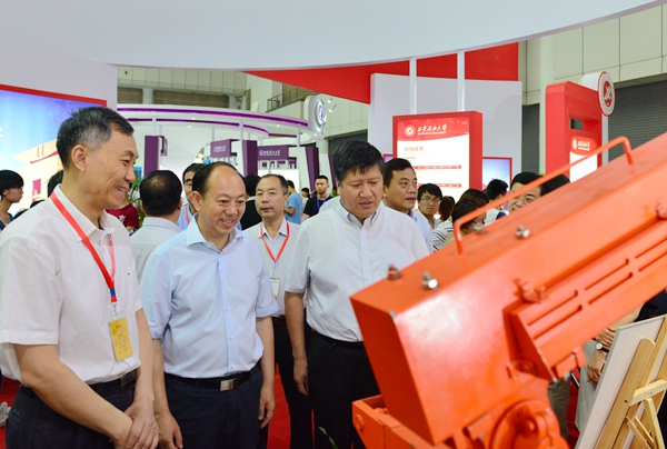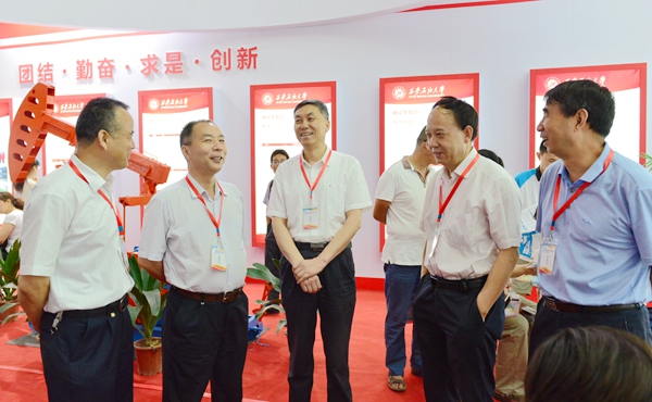 省委高教工委书记董小龙、省教育厅厅长王建利参观我校展区