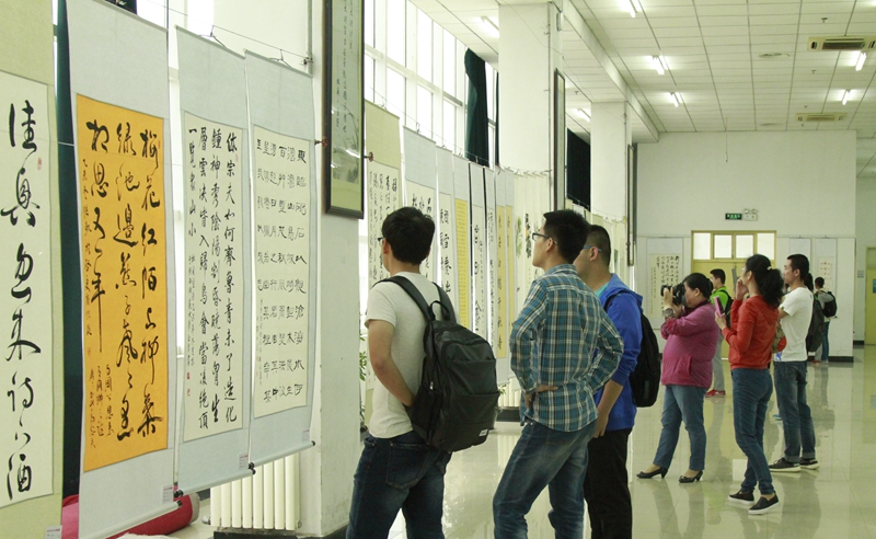 我校总会计师、书画协会会长杨恒仓宣布书画展开幕。随后大家一起参观了展览,并进行了书法交流笔会。