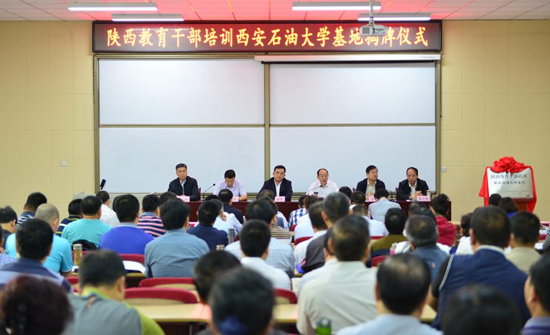 赛云秀书记代表学校作表态发言。他说,我校建校65年以来,始终坚持以“大庆精神”办学、以“铁人精神”育人,在多年的培训教育活动中,充分发挥石油行业的优良传统和作风,开展了以参观铁人纪念馆、学习铁人精神为内容的特色培训活动,收到了良好效果。 省委高教工委、省教育厅在我校建立“陕西教育干部培训基地”,是对我校干部培训工作的信任和支持,更是对我校进一步做好各项工作的鞭策和激励。他表示,学校将在省委高教工委、省教育厅的正确领导下,充分发挥和用好我校的办学特色、学科优势、专业特长和师资力量,按照突出特色、提升内涵、强化基础的要求,积极承担全省教育干部的培训任务。要开展培训研究,加强交流合作,不断提升教育培训质量,为陕西干部培训工作做出新的贡献。
