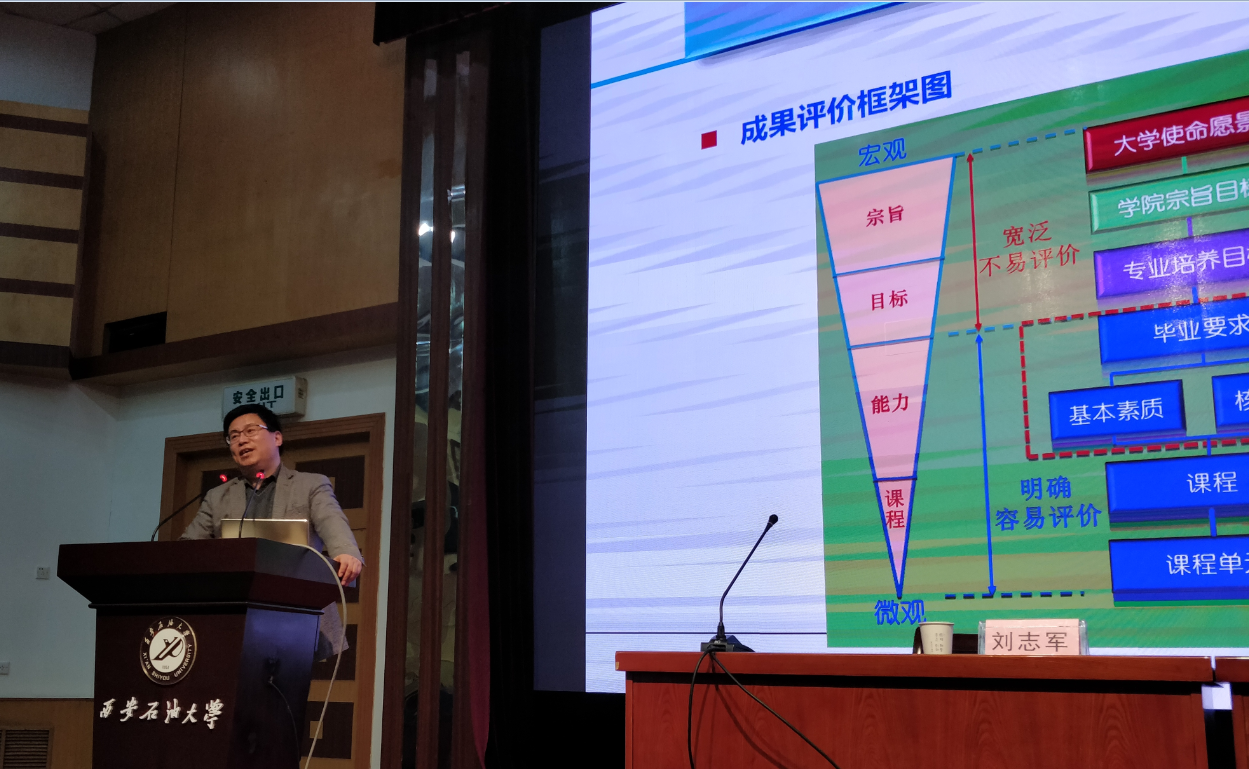 报告会上,刘志军教授介绍了成果导向教育(Outcome based education,简称OBE)的深刻含义,详细阐述了如何制定OBE理念的专业培养方案,内容包括培养目标、毕业要求、成果评价、课程大纲的撰写方法。刘教授的报告应用数据、图表等多种表达形式重点分析了学科、专业、课程之间的内在关系和建设内涵,并结合国内外著名高校本科专业培养方案案例,阐述在成果导向教育理念下,本科专业人才体系的构建和培养方案的制定要求。