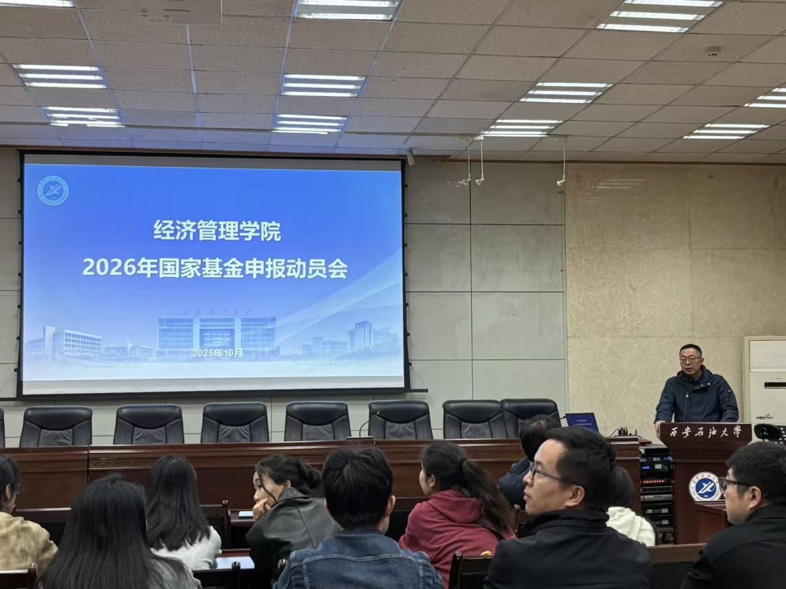为提前谋划、精准布局,进一步提升学院国家级科研项目的申报质量与立项率,10月10日下午,经济管理学院在雁塔校区第三会议室召开了2026年国家基金申报动员会。学院院长吴勋及拟申报国家基金的20余名青年博士教师参加了本次会议。会议由副院长李春霄主持。