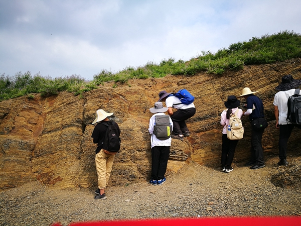 大二暑期开展的是综合实习,地点在安徽巢湖的实习基地。“大二结束后,学生的专业课学习增多,有了更丰富的知识储备,这个阶段的实习,对同学们的野外工作方法和技能提出了更高要求。”丁超老师说,巢湖观测点的岩石和剖面中含有丰富的化石,每年都有同学在观测过程中找到化石,这也是他们实习的彩蛋。这次实习主要围绕实测剖面进行,且需要学生在实习结束后完成地质填图报告。经过一段时间的锻炼,同学们使用测量工具的熟练度、岩石分类的熟悉度、构造现象的辨别分析能力都得到了提升,切身体会到野外地质工作不能走马观花,需要细致记录、精准测量、大胆想象。同学们切身感受到了老师常挂在嘴边的那句话:看山不是山,看水不是水。在他们眼中,山水不再仅仅是可观可赏的风景,山如何形成,跨越几个地层?水从哪里来,如何形成今日形态?动静皆有因果。
