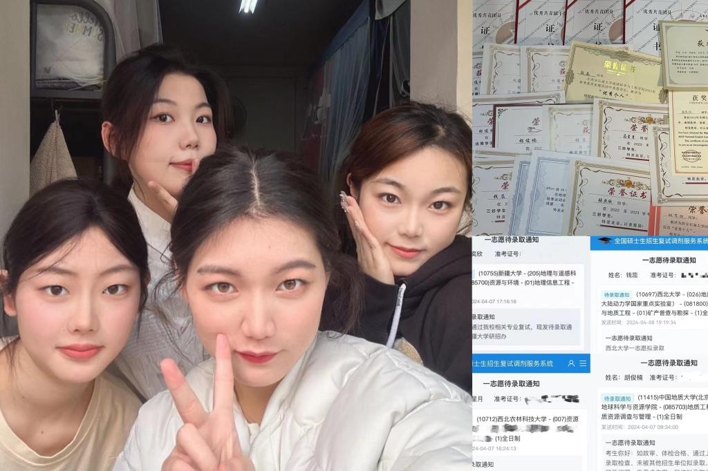 236宿舍来自三个专业的4名女生性格迥异、习惯不同,但四年一直互相鼓励、互相帮助。从大一起她们在进步的路上就不允许一个人掉队,在大三阶段一起踏上了考研之路,当遇到困难或有所懈怠时,坚强的女孩儿们经常用温暖且坚定的鼓励与安慰让对方重拾信心,继续前行。她们踏着晨曦、踩着星光,一路欢声笑语,走向“研”路。目前3名女生被中国石油大学(北京)录取,1名女生被本校录取。